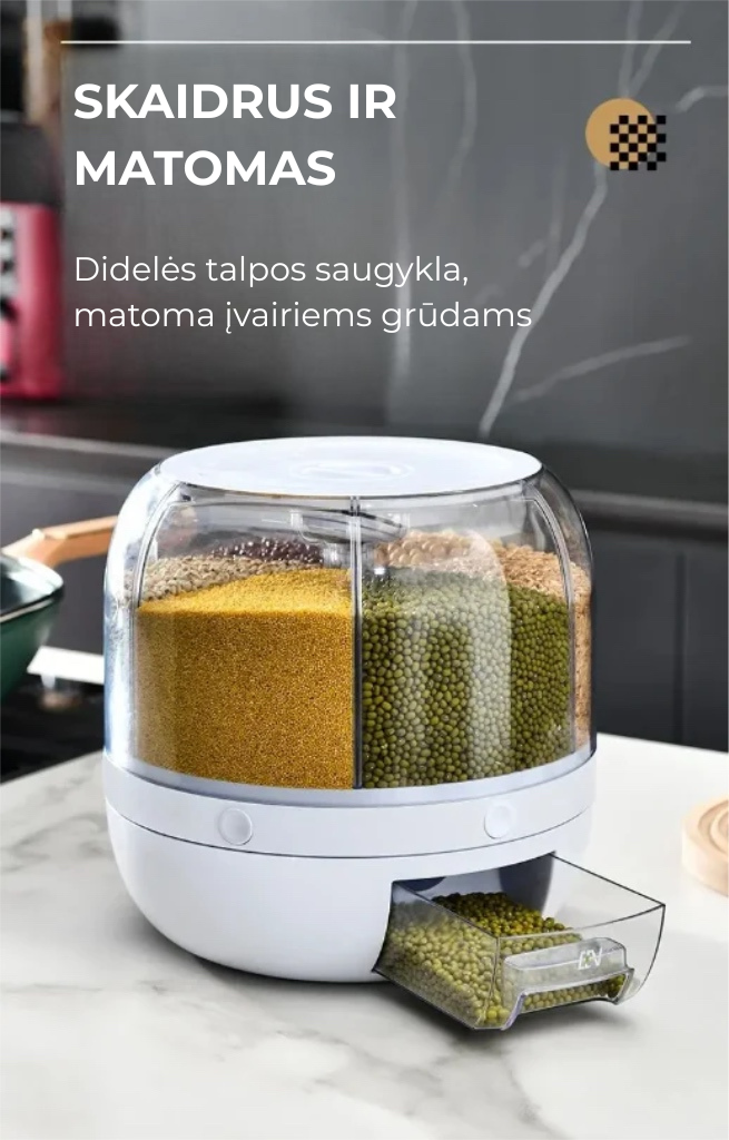360° Besisukantis grūdų dozatorius – užtikrina tvarkingą ir efektyvų virtuvės išdėstymą