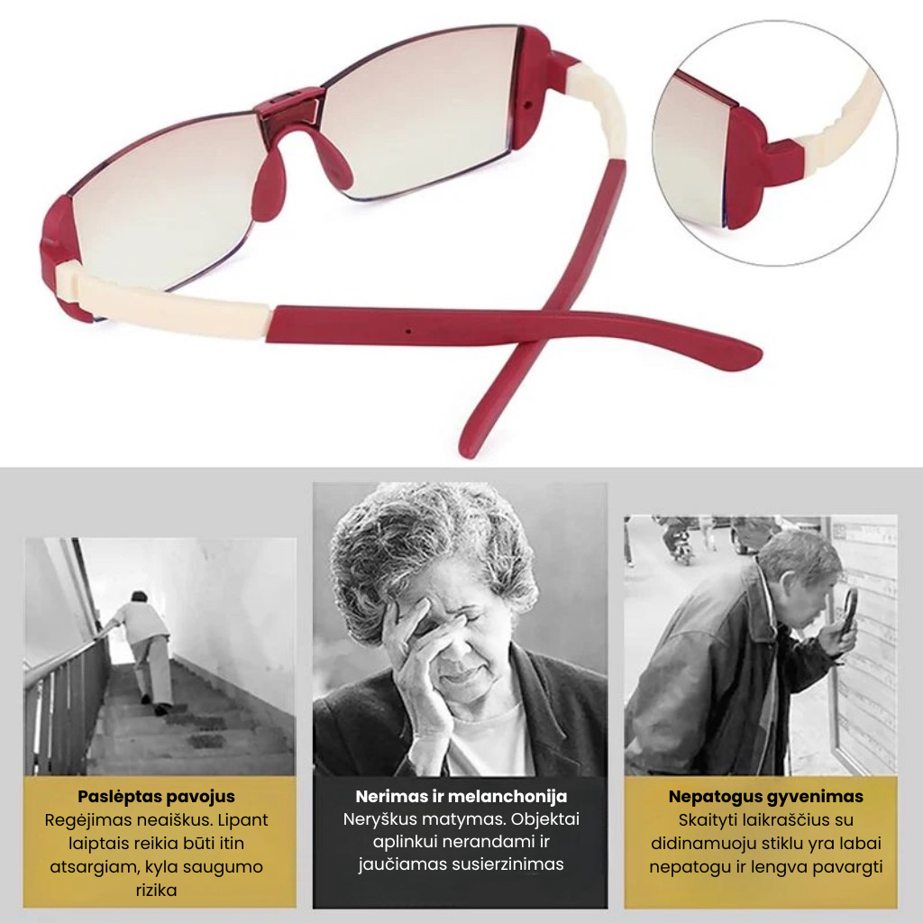 - Išmanaus priartinimo skaitymo lęšiai - Progresiniai lęšiai neturi matomos ribos tarp fokusavimo zonų, vaizdas nesijaučia šokinėjantis, nereikia nusiimti akinių – nuleidę žvilgsnį matysite iš arti, pakėlę – iš toli. Lęšiai skirti patogiai matyti įvairiais atstumais.
