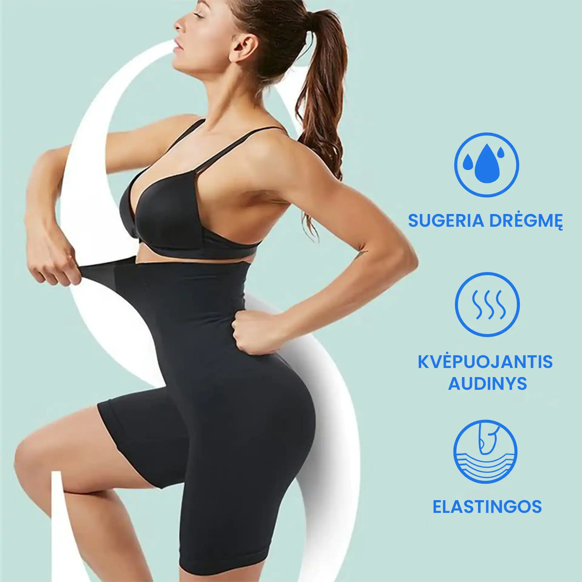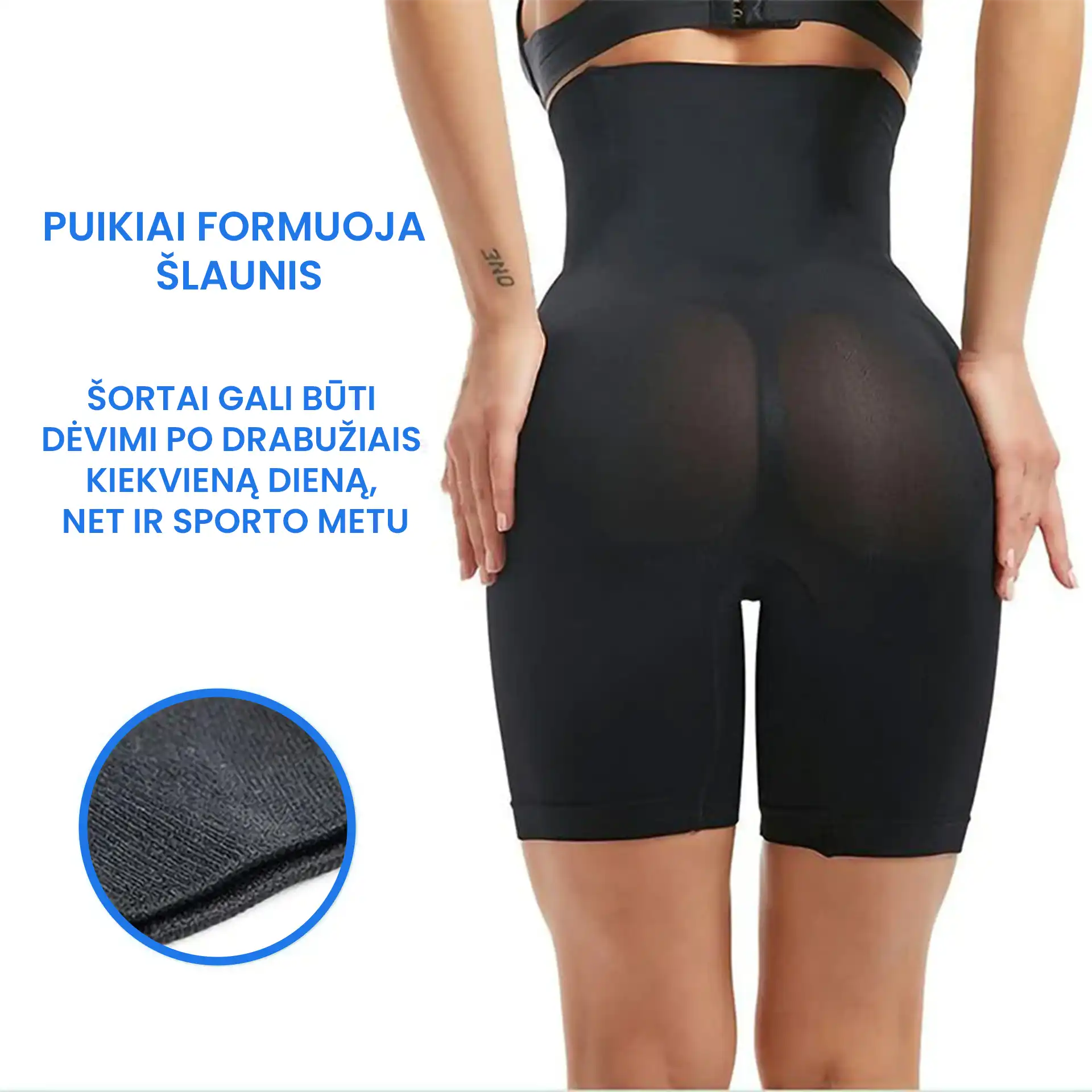 Apimtis koreguojantys šortai, kurie ne tik padailina liemenį, bet kartu suteikia formą sėdmenims bei tvirtumą šlaunims!