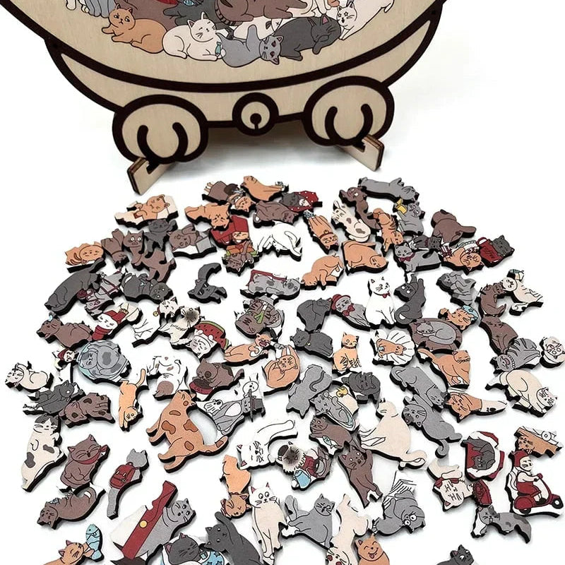 Kiekviena dėlionės detalė turi savo formą – kai kurios primena katės letenėles, kitos vaizduoja kates žaismingose ar poilsio pozose. Kiekvienas sujungimas tikslus ir malonus, paversdamas kiekvieną jungtį mažyte užbaigimo akimirka.