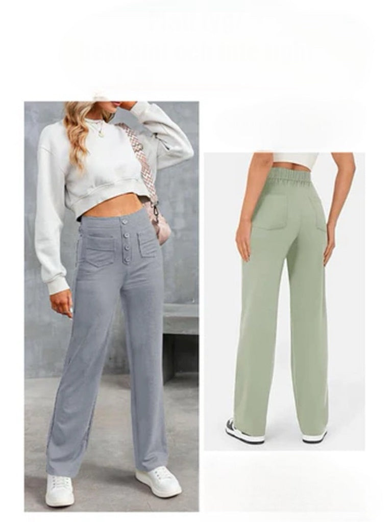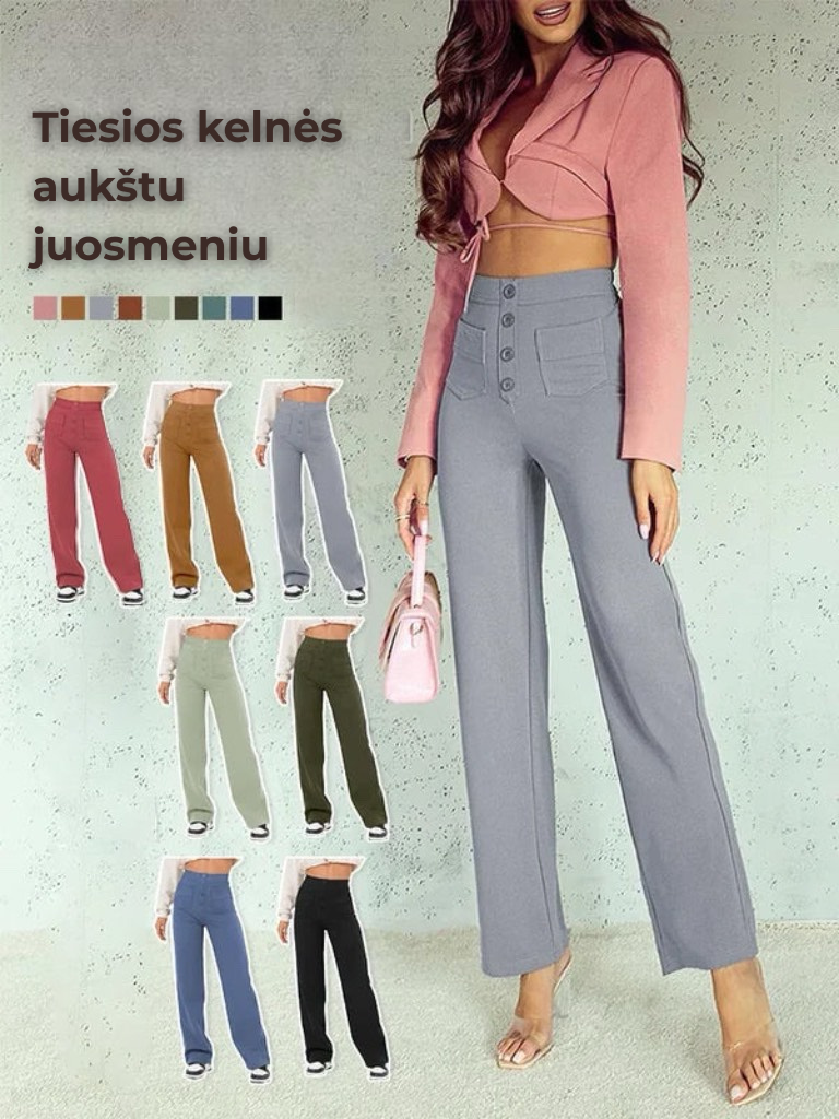 Vienspalvės laisvalaikio tiesios kelnės su aukštu juosmeniu