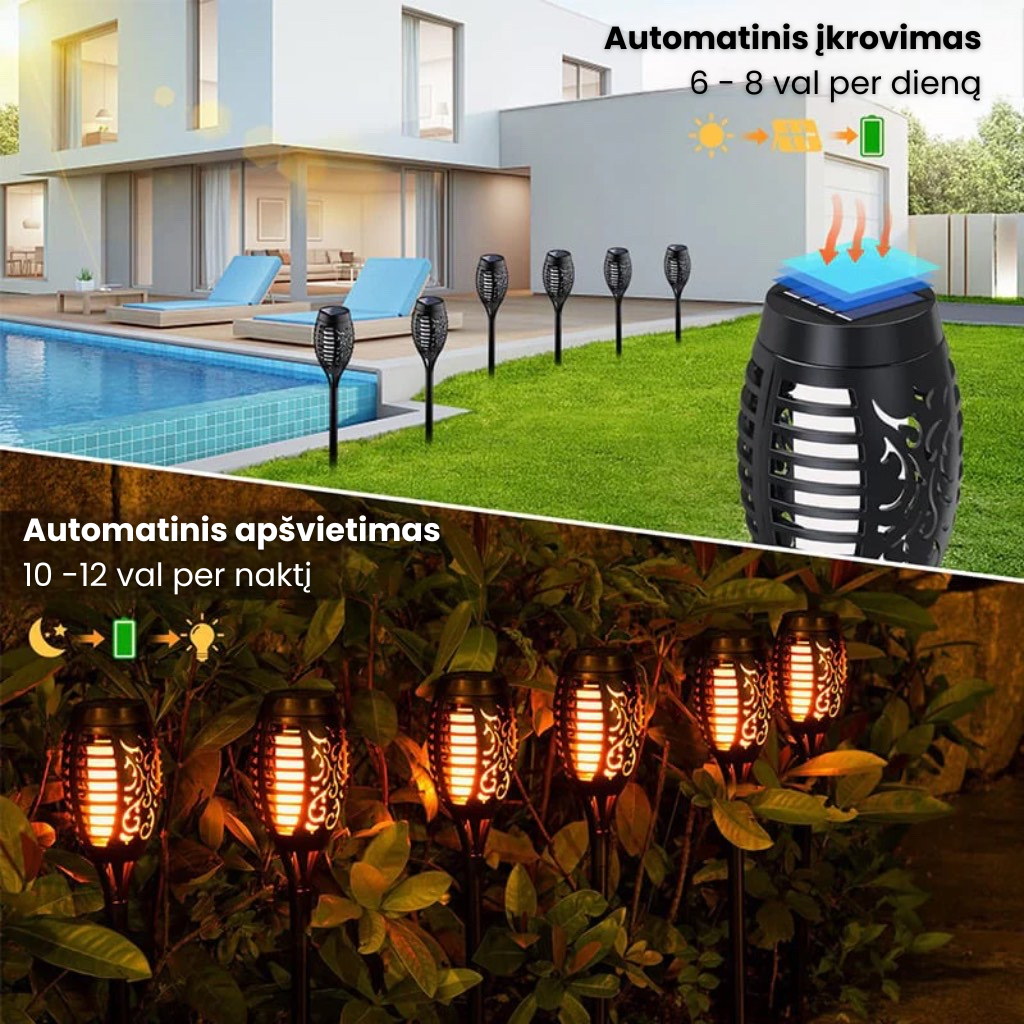 Sukurtos su realistišku liepsnos mirgėjimo efektu, jos suteikia jaukų, šventišką spindesį jūsų kiemui, sodui, įvažiavimui ar kalėdiniam dekorui. Tobulos Kalėdoms ar naudojimui visus metus!