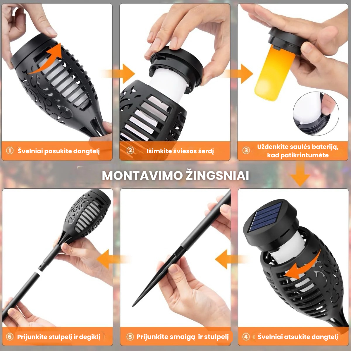 Tiesiog įsmeikite į žemę — nereikia jokių įrankių ar laidų. Puikiai tinka sodams, terasoms, takeliams, įvažiavimams ar kaip kalėdinės šventinės dekoracijos.