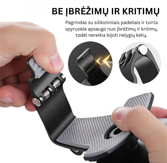 ⚖️ Neslystantis tvirtinimas – minkštos silikoninės pagalvėlės apsaugo telefoną ir automobilį nuo įbrėžimų, o tvirtas spaustukas laikosi stabiliai net ant lenktų paviršių.