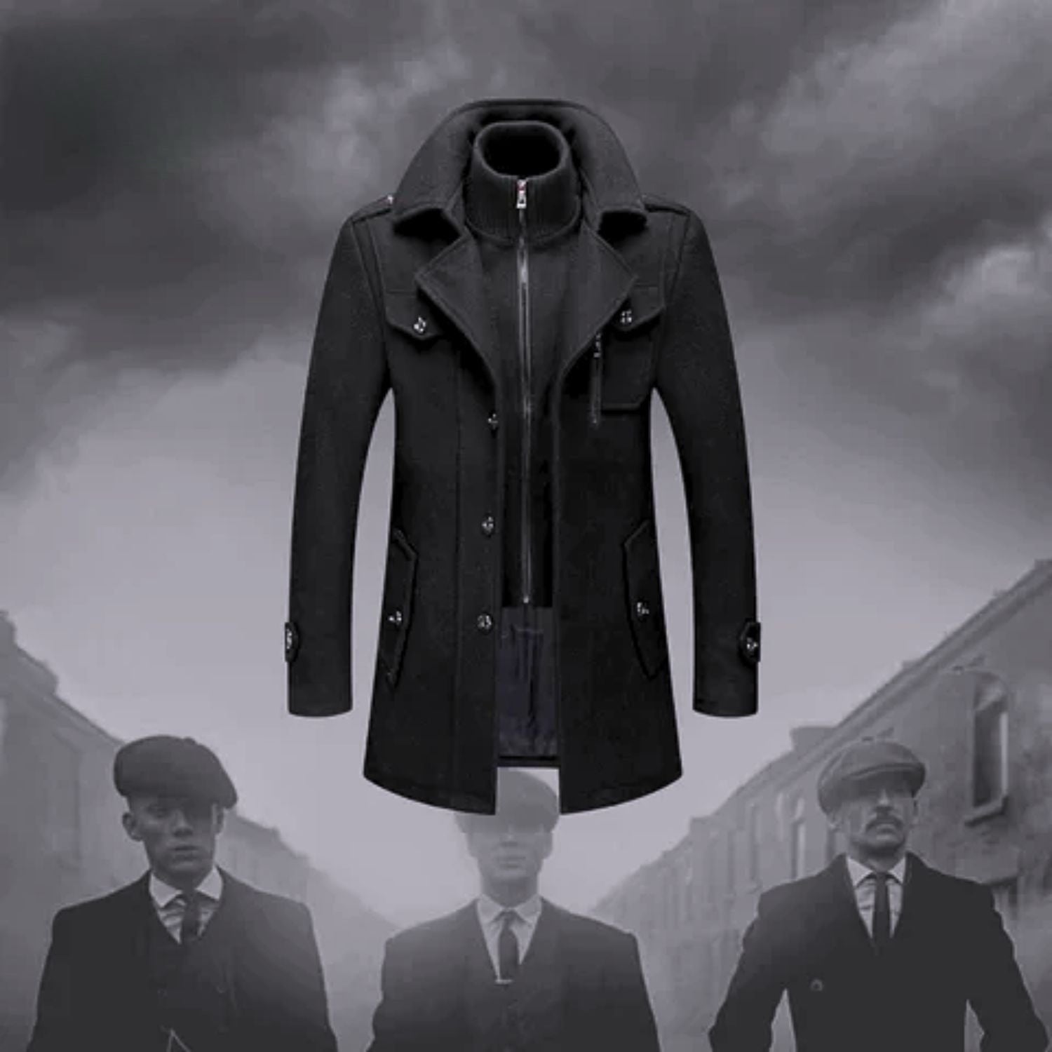 Dviguba apykaklė | Stilingas ir šiltas vilnonis paltas vyrams „Peaky Blinders“ stiliumi!