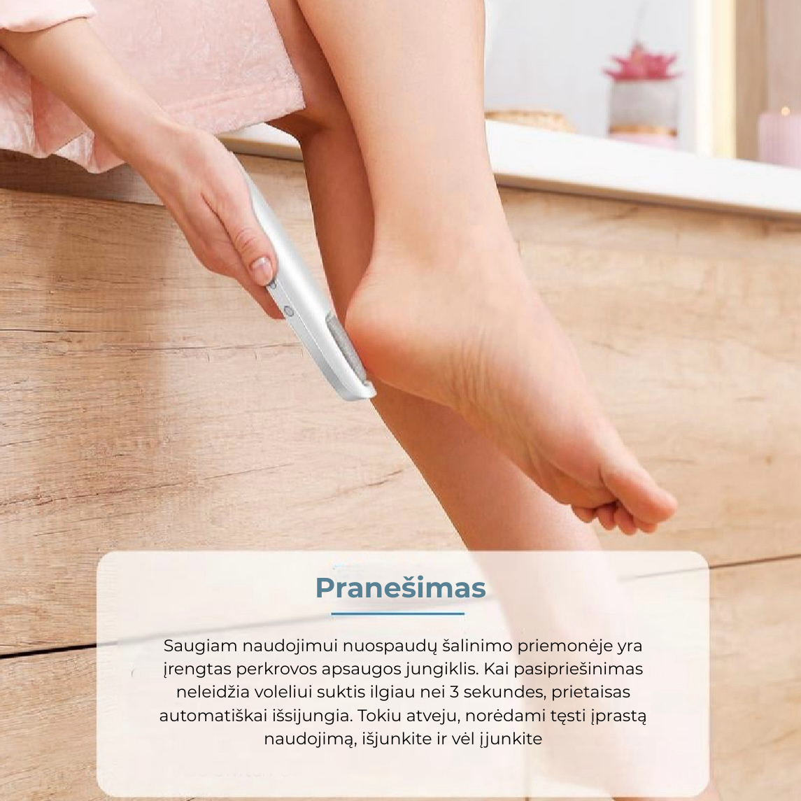💡Išmani slėgio technologija – Automatiškai prisitaiko, kad apsaugotų sveiką odą ir be skausmo pašalintų nuospaudas.