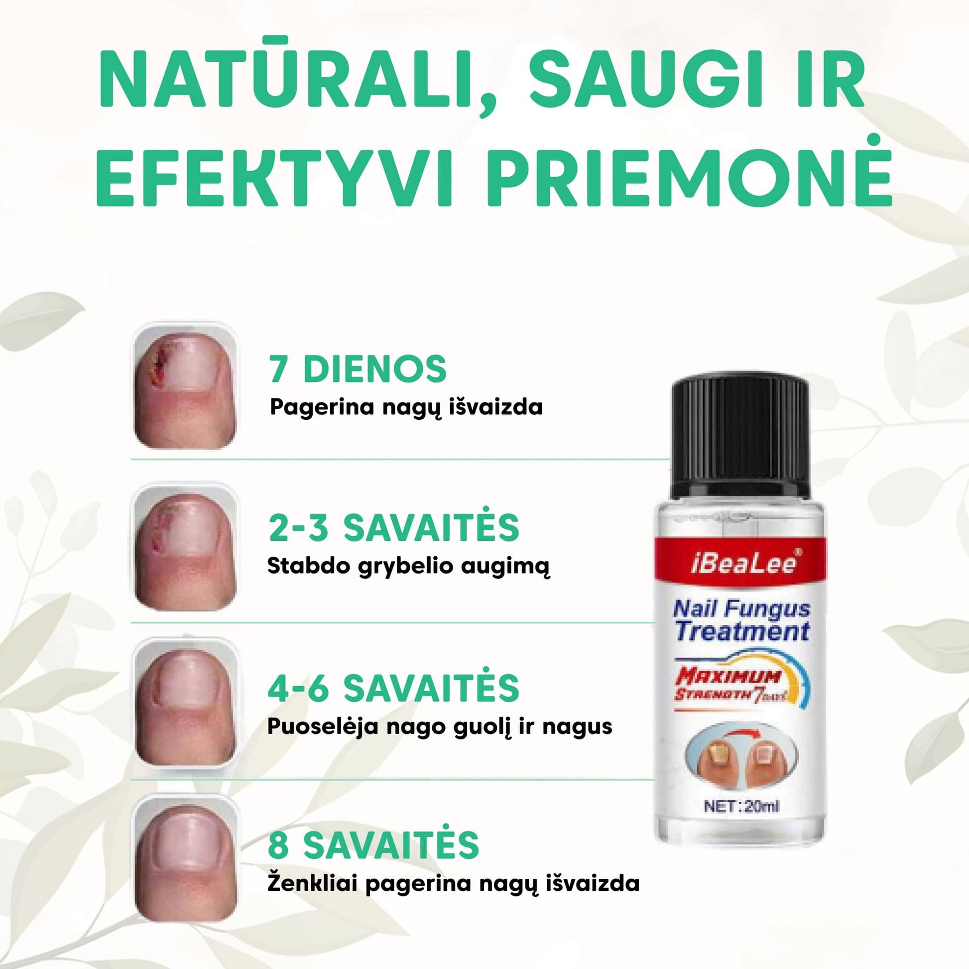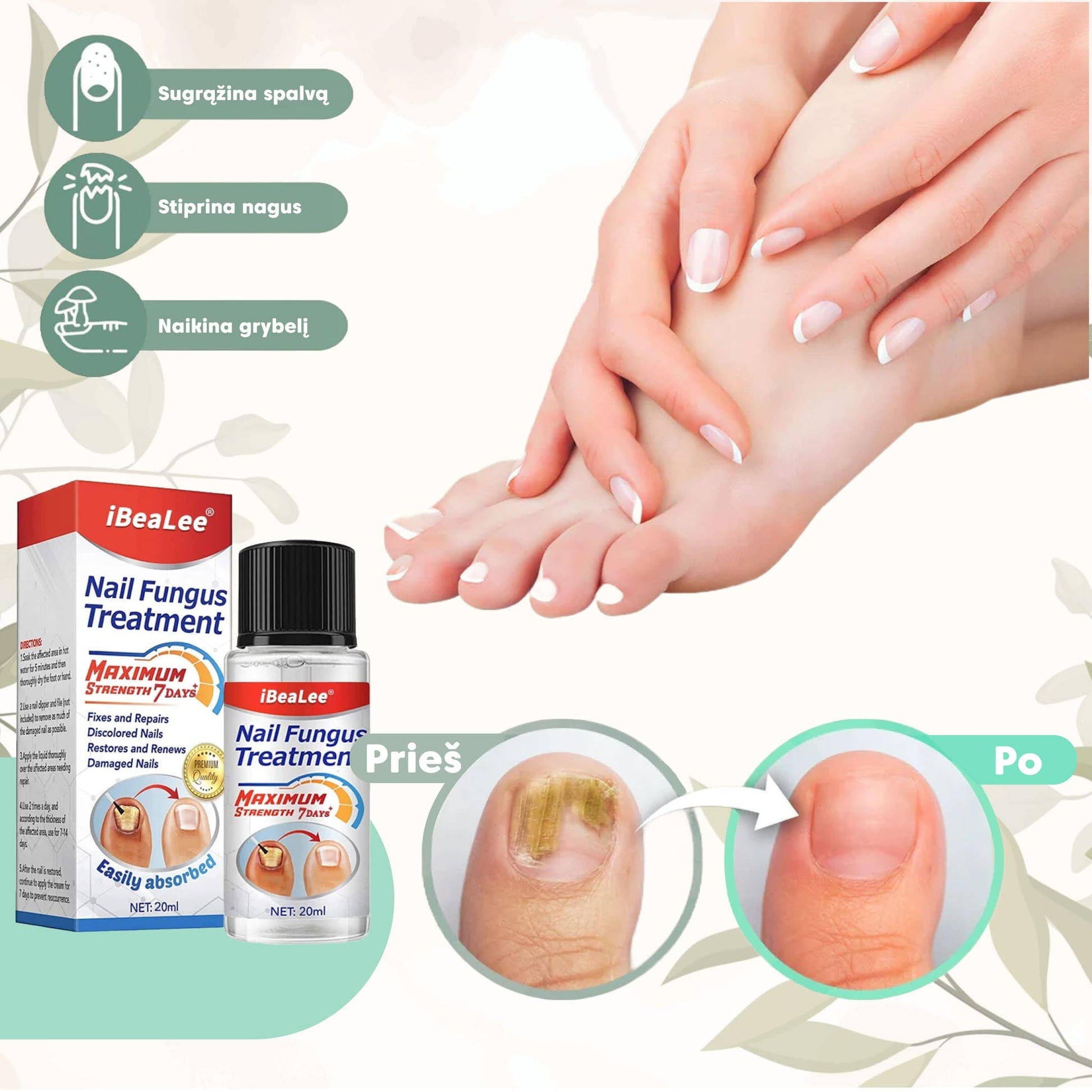 ®iBeaLee yra medicininė priemonė, skirta naikinti grybelį, pagerinti grybelio pažeistų nagų išvaizdą ir apsisaugoti nuo pakartotinio grybelio užsikrėtimo.