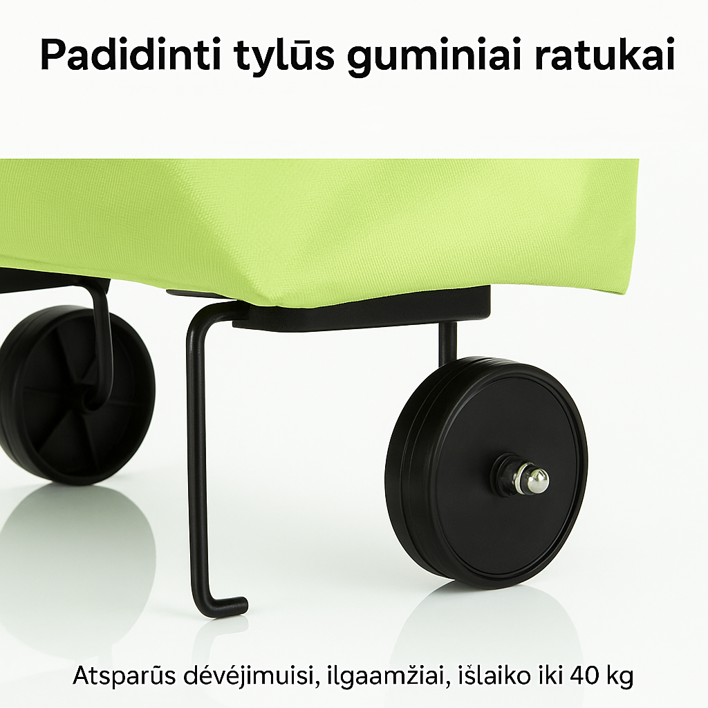 Atsegus krepšį, jis akimirksniu virsta erdvia pirkinių taše. Kai nešiesi daugiau prekių, išskleisk jį – ir jis tampa patogiu vežimėliu su ratukais.