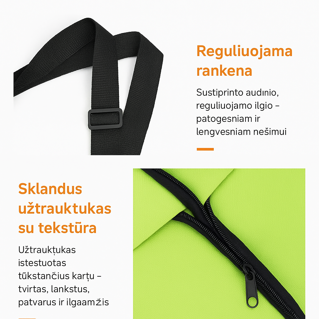 - Medžiaga: Oksfordo audinys + vidutinio tankio pluošto plokštė