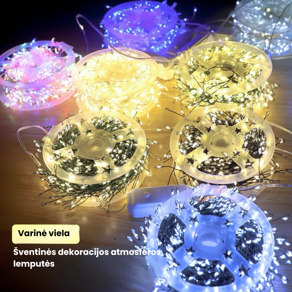 LED švieselės: švelni šviesa, energiją taupančios ir ilgaamžės, sukuriančios jaukią šventinę atmosferą.