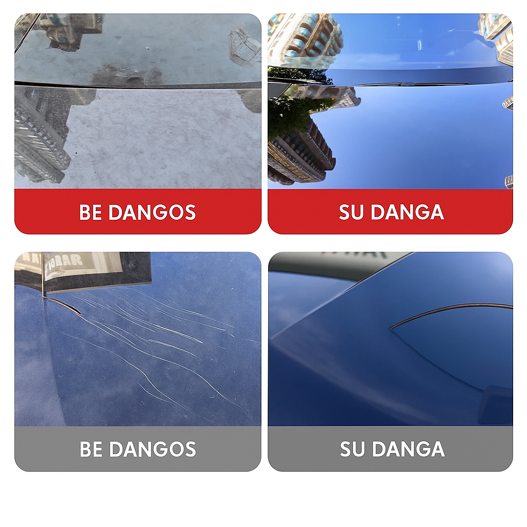 Apsaugo nuo smulkių pažeidimų, kuriuos sukelia smėlis, kelio purvas ar kiti išoriniai veiksniai. Danga formuoja tvirtą sluoksnį, saugantį automobilio dažus.