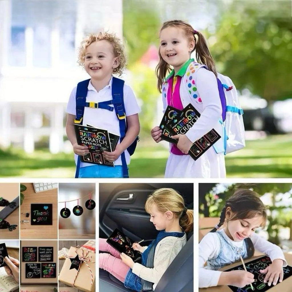 Nereikia dažų ar teptukų – tiesiog braižyk juodu paviršiumi mediniu pieštuku ir po juo pasimatys spalvoti piešiniai. Vaikai gali kurti piešinius, ornamentus, rašyti žinutes ir dekoruoti puslapius kaip tik nori. Šis braižomas popierius lavina vaizduotę, motoriką ir kūrybiškumą. Smagus būdas paskatinti vaikus kurti, rašyti linkėjimus ir dalintis jais su draugais bei šeima.